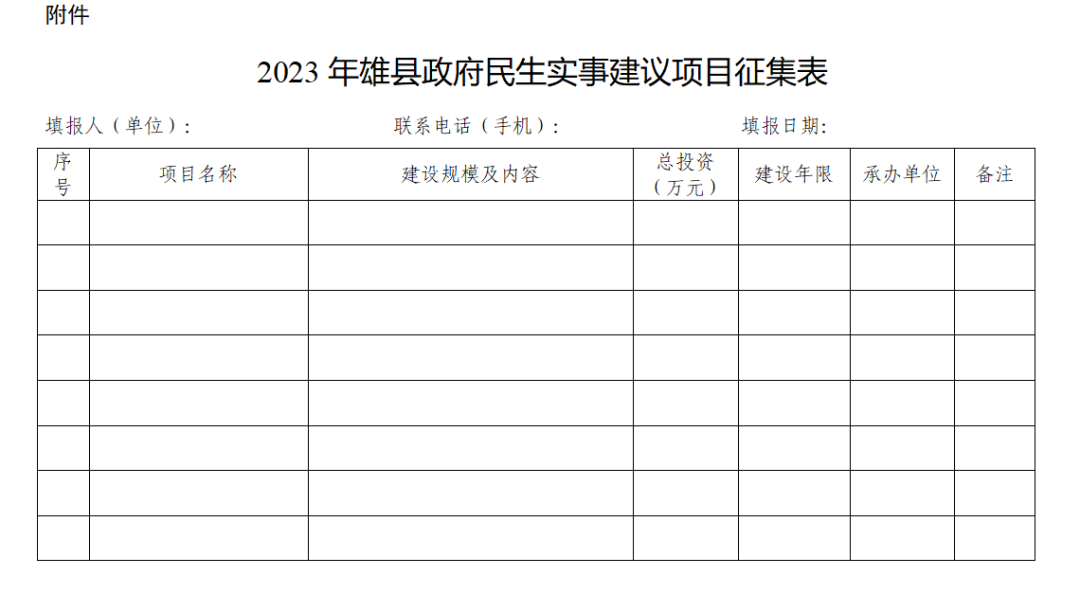 雄县人民政府关于征集2023年政府民生实事建议项目的通告