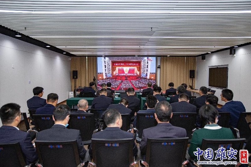 雄安新区党工委管委会和雄安集团领导、新区各级各部门主要负责同志集中收听收看中国共产党第二十次全国代表大会开幕会。中国雄安官网毛鹤然 摄