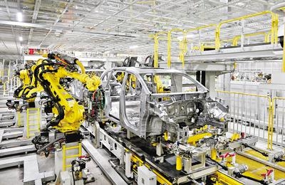 北京现代沧州工厂车身车间生产线。河北日报记者张昊 摄