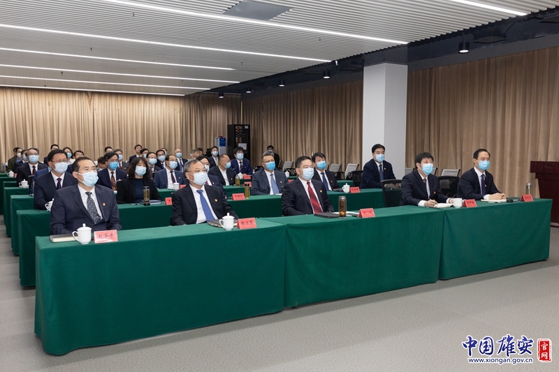 雄安新区党工委管委会和雄安集团领导、新区各级各部门主要负责同志集中收听收看中国共产党第二十次全国代表大会开幕会。中国雄安官网毛鹤然 摄