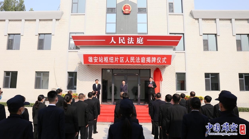 中国雄安官网10月24日电 10月21日上午,雄县人民法院雄安站枢纽片区人民法庭挂牌成立,雄安新区党工委委员、管委会副主任陈峰,雄安中院党组书记、院长刘光辉共同为法庭揭牌,雄县县委书记李春主持揭牌仪式。