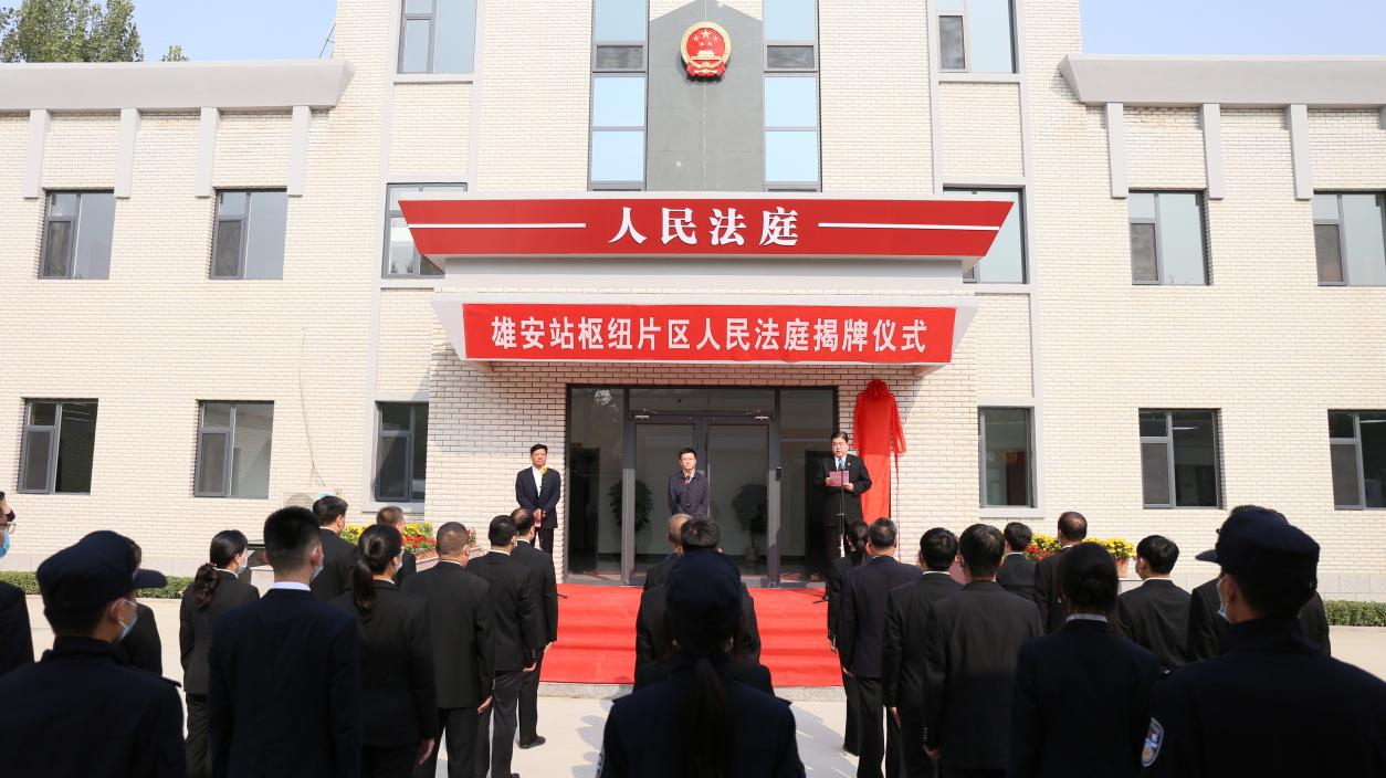雄县人民法院雄安站枢纽片区人民法庭揭牌仪式现场。雄安中院供图