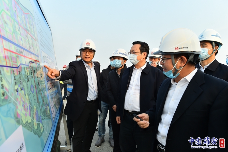 秋日风光好,奋斗正当时。雄安新区启动区各项目施工现场塔吊林立,工程车辆来往穿梭,一派繁忙景象。张国华一行先后来到西北居住片区二期中交启园、中国星网、综合服务东北片区南部小学、南河枢纽、新安北堤老堤、一二三组团道路管廊、雄忻高铁萍河先开段等项目建设现场,听取项目建设进展情况汇报,认真检查疫情防控措施落实情况,现场协调解决相关问题。