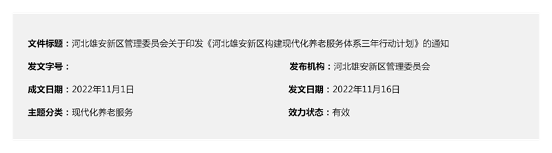 河北雄安新区构建现代化养老服务体系三年行动计划