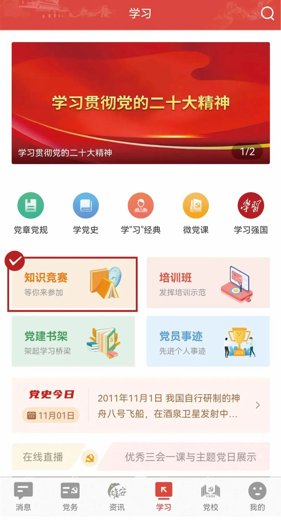 方式一:登录雄安党建APP,进入“学习-知识竞赛”栏目参与。
