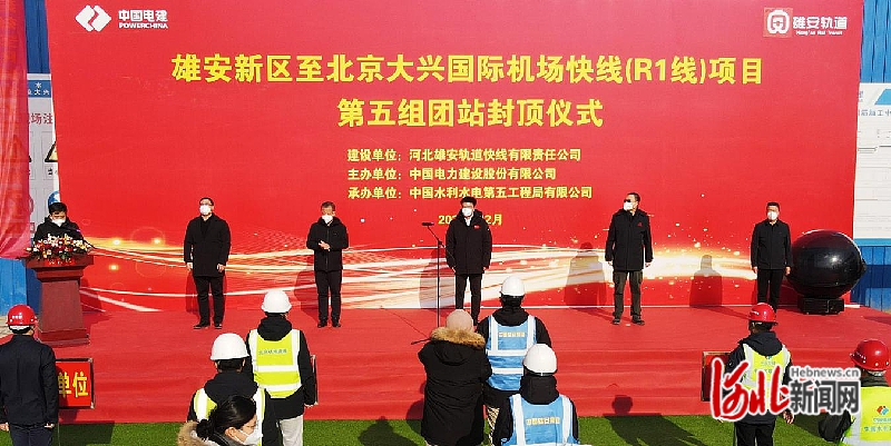 雄安新区至北京大兴国际机场快线(R1线)项目第五组团站封顶仪式现场。河北新闻网记者刘光昱 摄