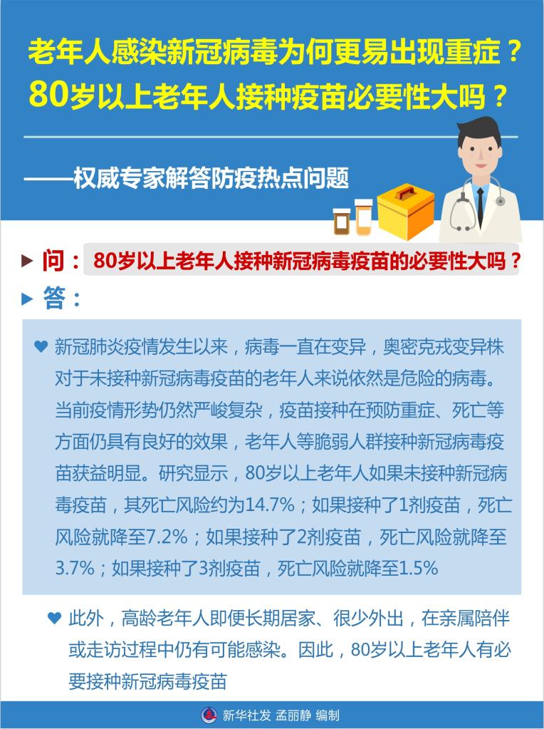 2.问:80岁以上老年人接种新冠病毒疫苗的必要性大吗?