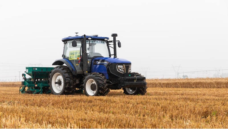 全程机械化无人农场建设项目无人化收割作业现场。雄安新区公共服务局供图