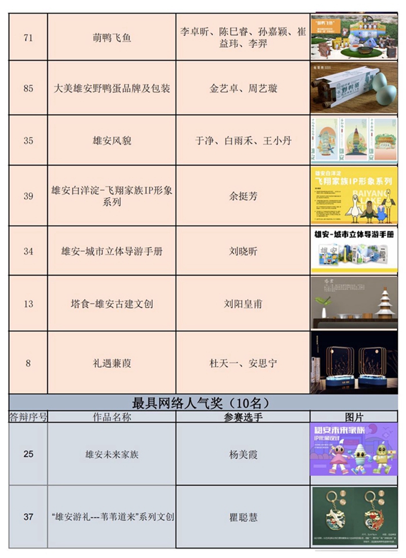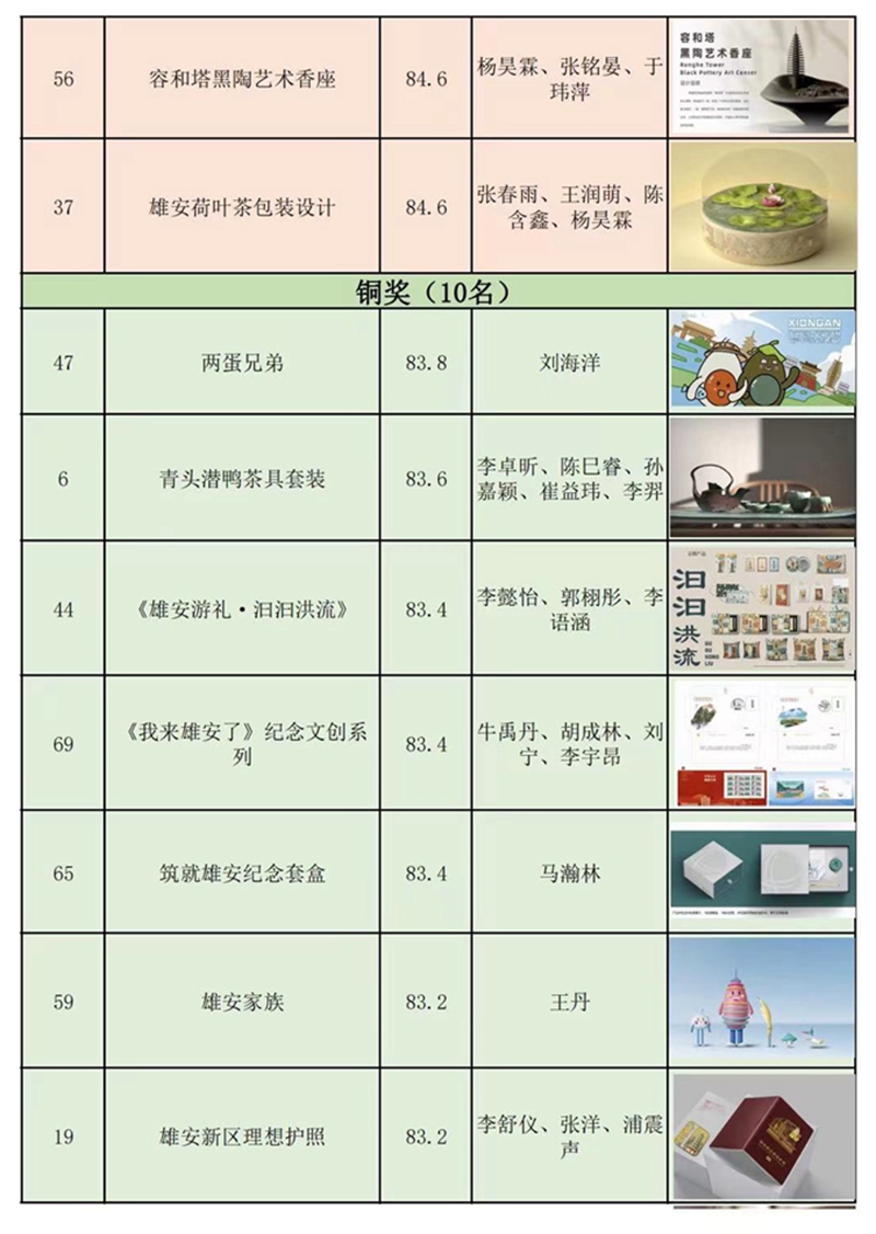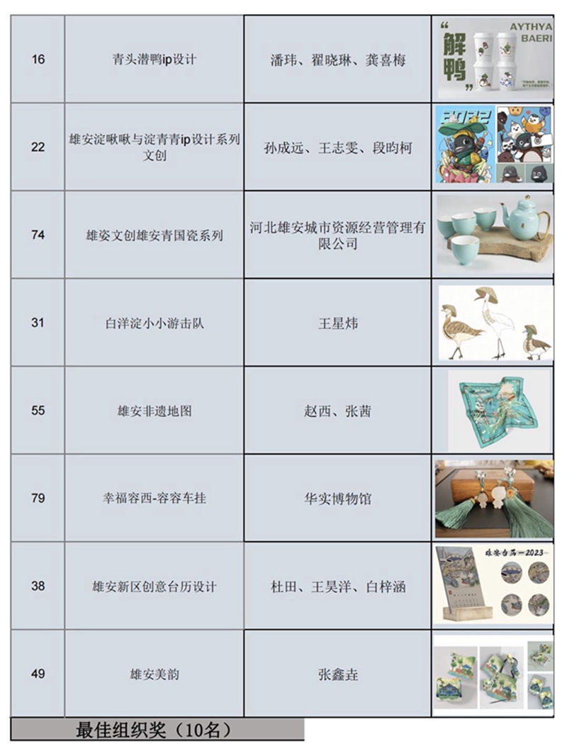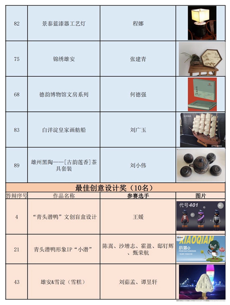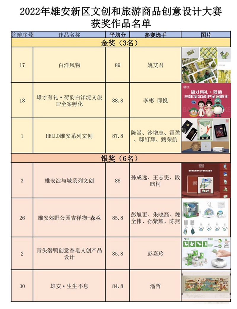 按照《2022年雄安新区文创和旅游商品创意设计大赛总体方案》,经专家评委综合评审,现对决赛获奖作品予以公示(名单见附件)。