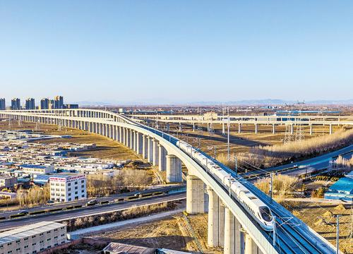 12月27日,动车组列车驶过京唐城际铁路唐山特大桥。河北日报记者赵杰 摄