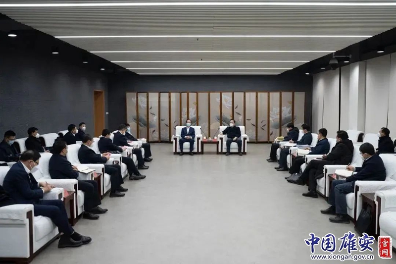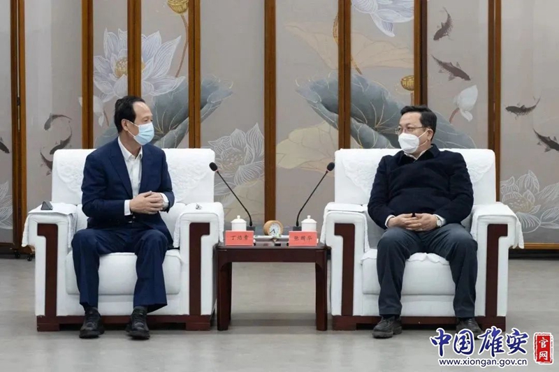 张国华与中国电建党委书记、董事长丁焰章一行举行工作座谈。中国雄安官网李鑫 摄
