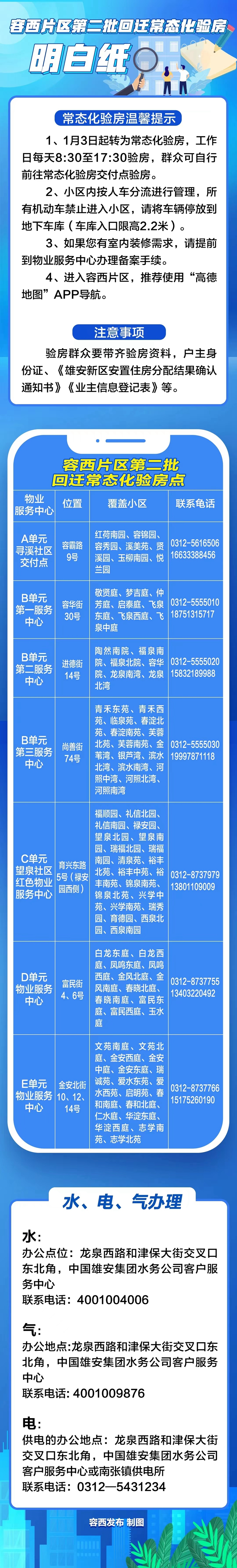 1月3日起,容西片区第二批回迁进行常态化验房,群众可自行前往常态化验房交付点验房。