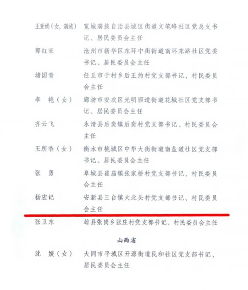 近日,民政部发布关于表彰全国先进基层群众性自治组织、全国优秀城乡社区工作者的决定。雄安新区安新县三台镇大北头村党支部书记、村民委员会主任杨宏记榜上有名,获评全国优秀城乡社区工作者。
