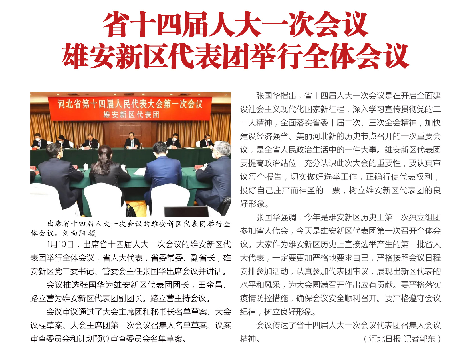 省十四届人大一次会议雄安新区代表团举行全体会议