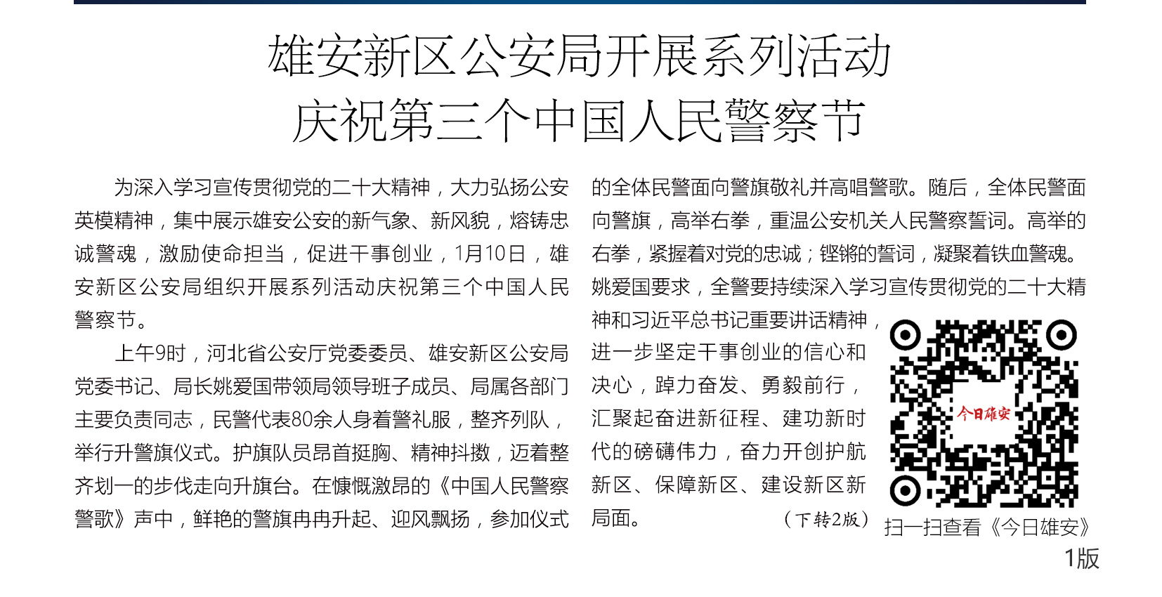 雄安新区公安局开展系列活动庆祝第三个中国人民警察节