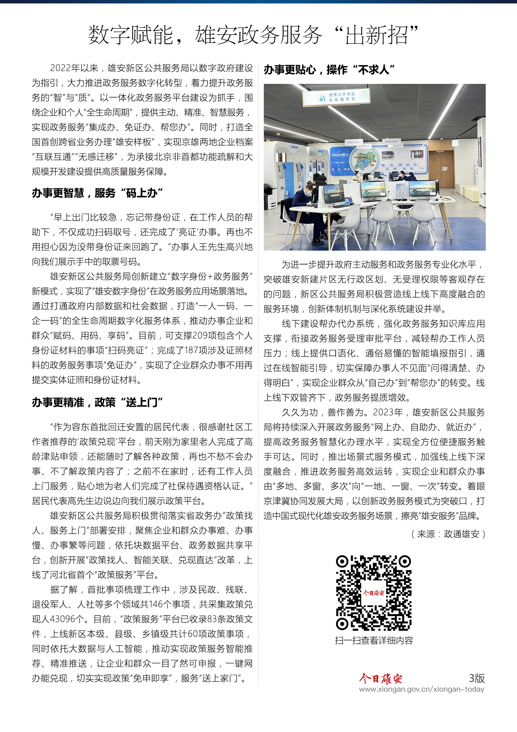 【雄安之声】雄安新区打造“一人一码、一企一码”的全生命周期数字化服务体系