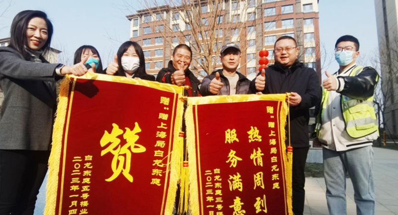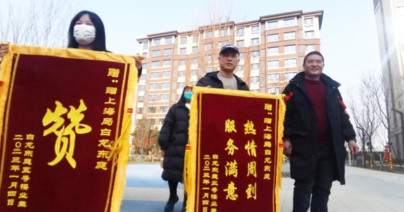 1月10日,容西片区白龙东庭回迁居民把锦旗送给中铁上海工程局的建设者,表达对建设者的敬意。河北新闻网记者刘光昱 摄