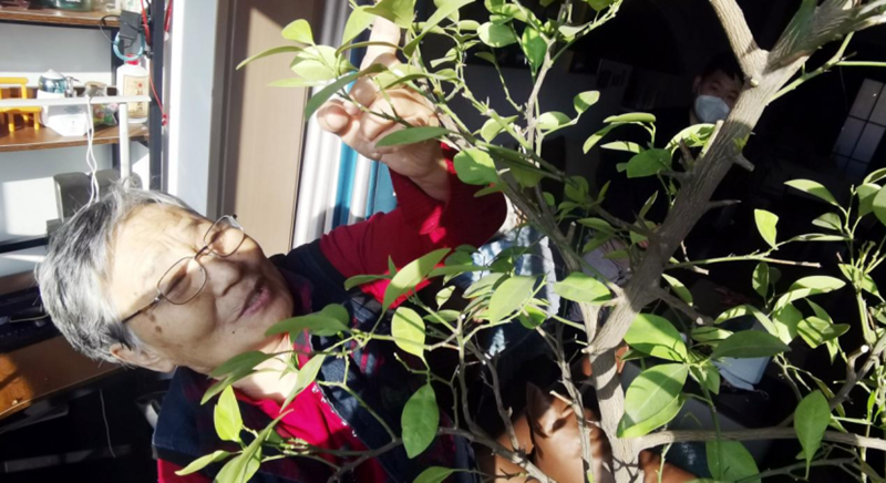 1月10日,家住容西片区飞泉中庭小区的80岁老党员何素香老人喜滋滋地对走访的社区志愿者介绍自己的新居和绿植。“我喜欢花草,新房子暖和、采光好,不仅家人们住得很舒适,花也都很好,你们看,这金桔树现在就开花了,春节就结果了。”河北新闻网记者刘光昱 摄