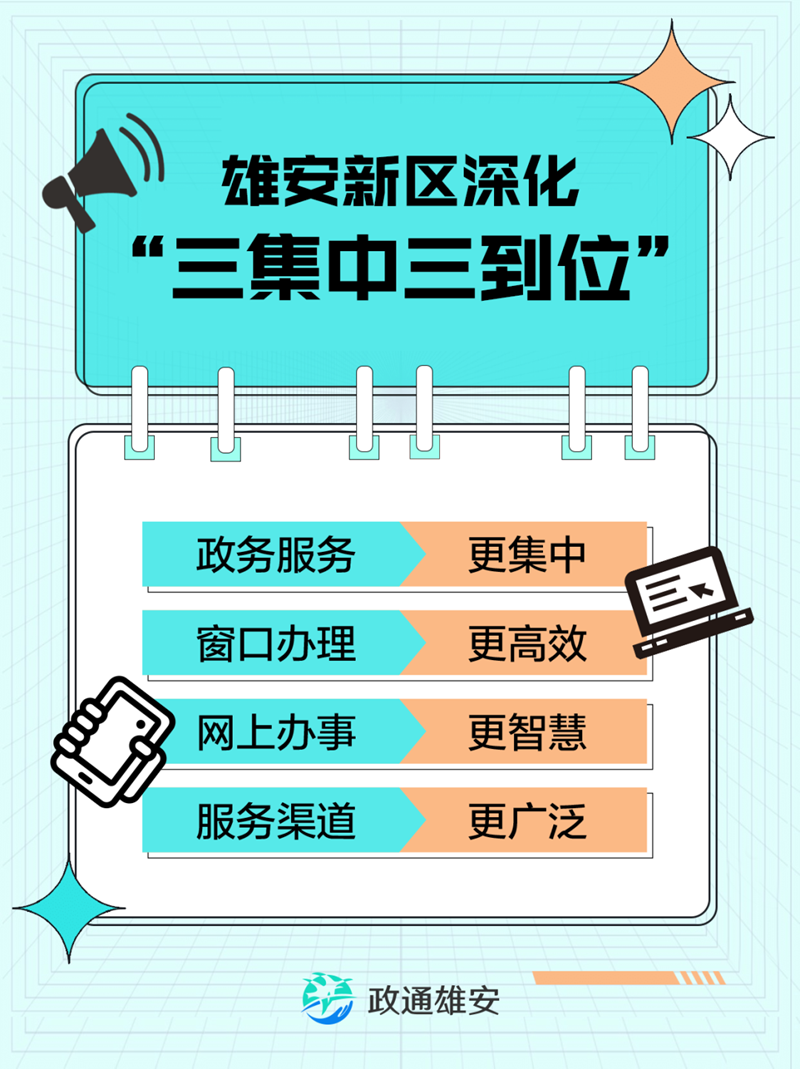 “三集中三到位”改革是对新区政务服务体制优化提升的一次创新探索,更是开展政府自身改革的有益尝试。雄安新区多措并举深化改革,以推进整体政府、服务型政府建设为核心,以打造国际政务服务“新标杆”为目标,力争打造“办事不求人、审批无障碍”雄安政务服务名片。