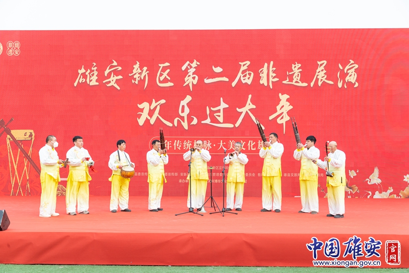 雄县亚古城村音乐会表演笙管乐《祭枪-祭刀-煞落》。中国雄安官网牛思佳 摄