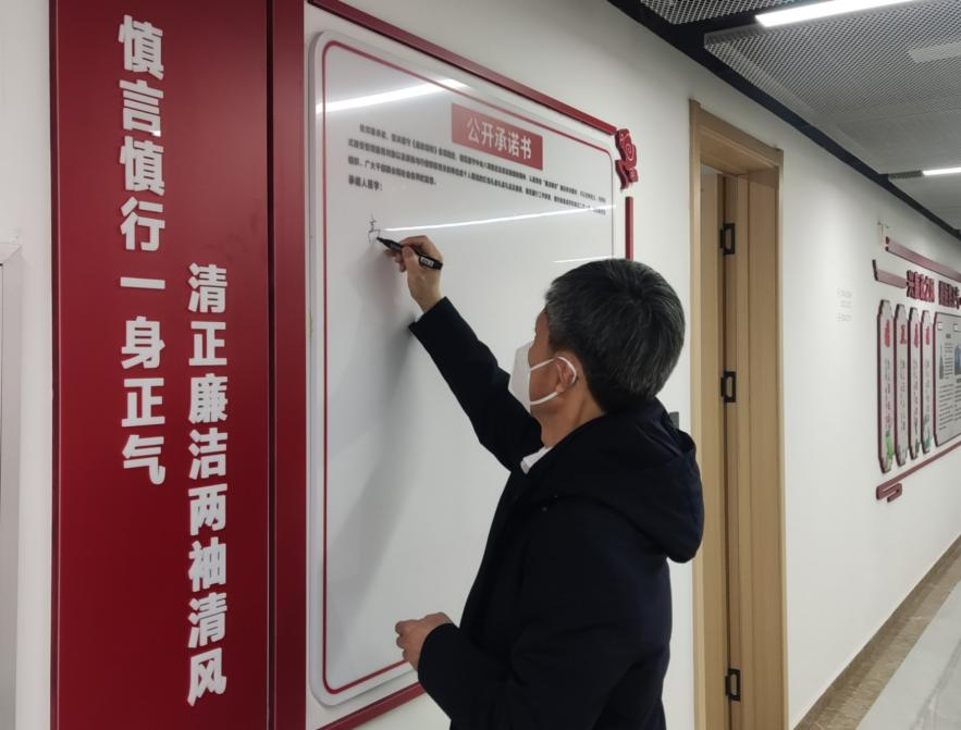 雄安新区公共服务局局长高立春在“廉政廊”上签署公开承诺书。雄安新区公共服务局供图