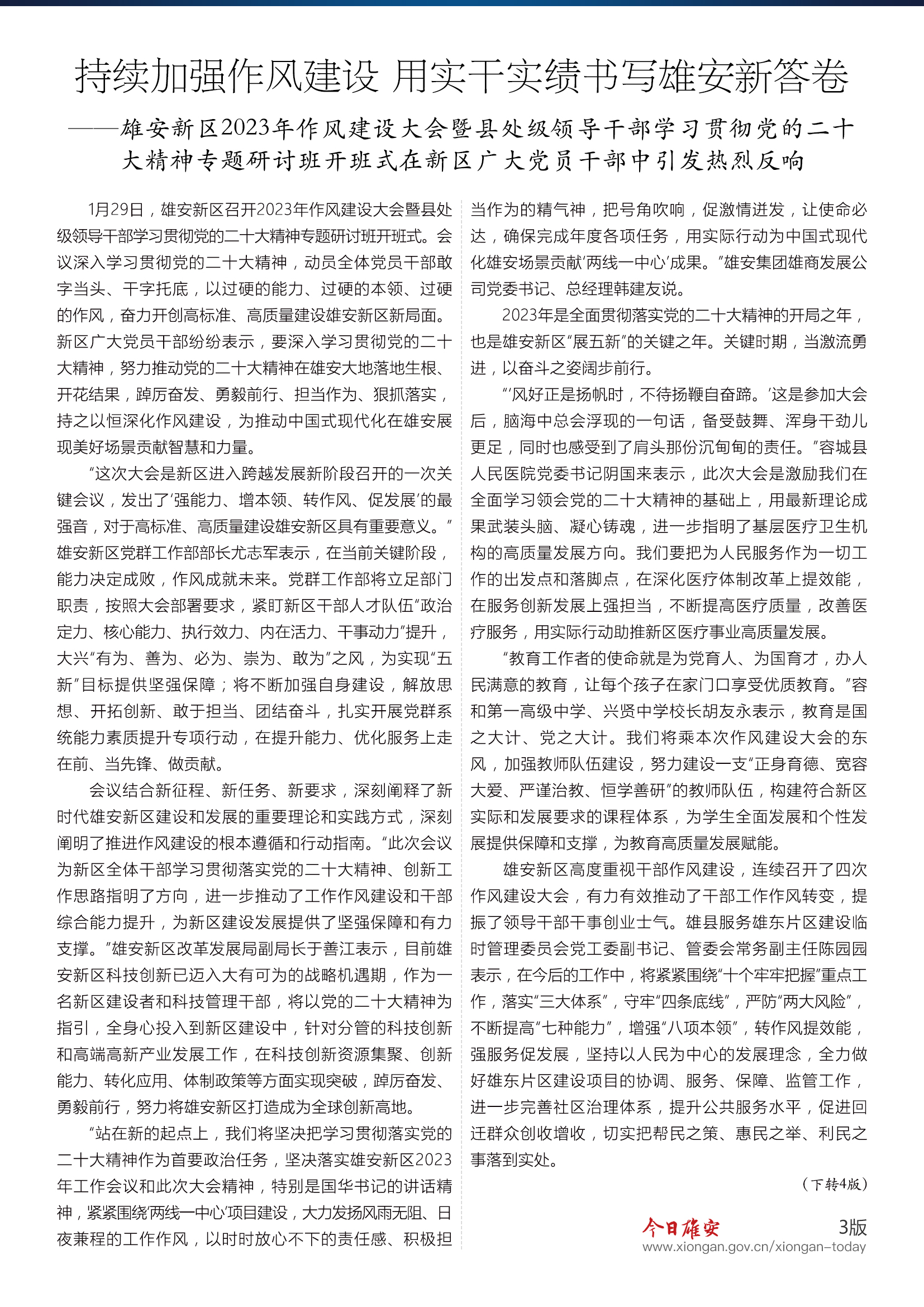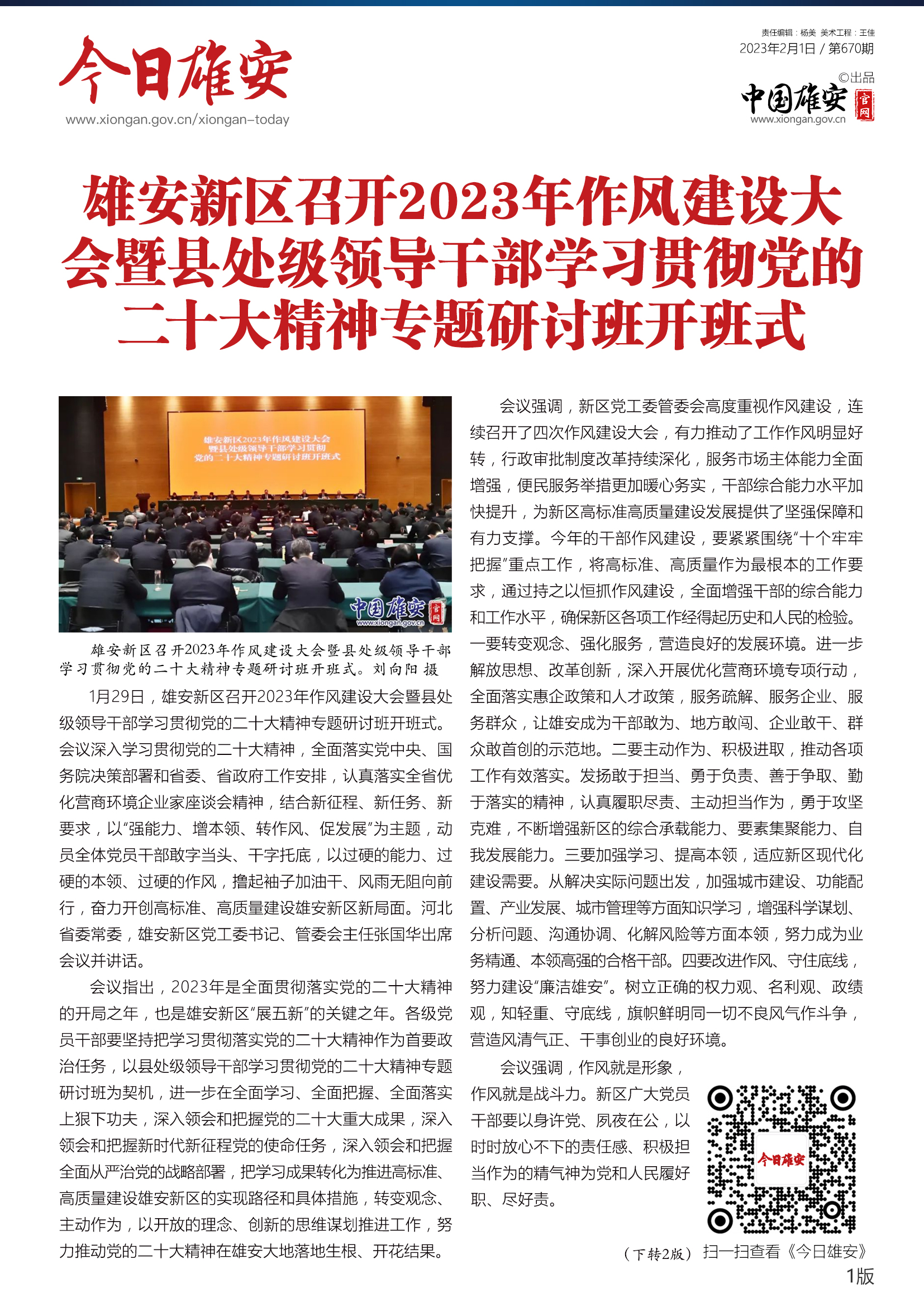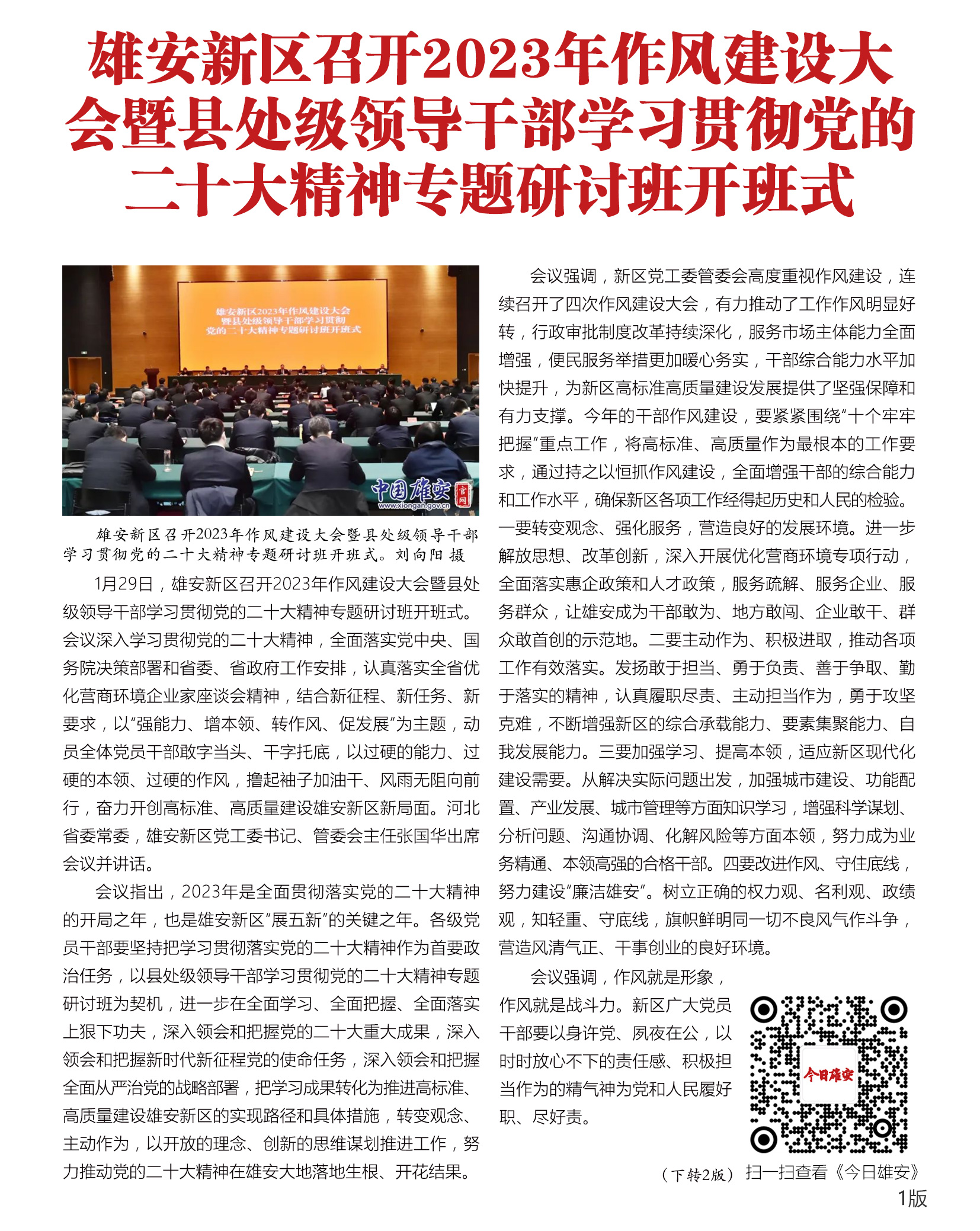 时政播报丨雄安新区召开2023年作风建设大会暨县处级领导干部学习贯彻党的二十大精神专题研讨班开班式