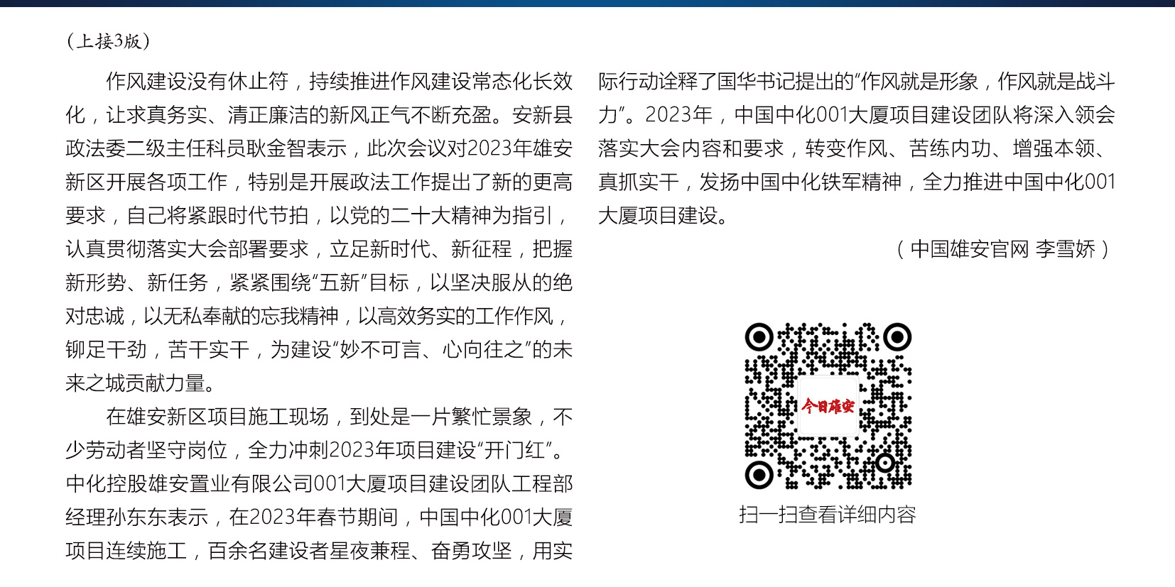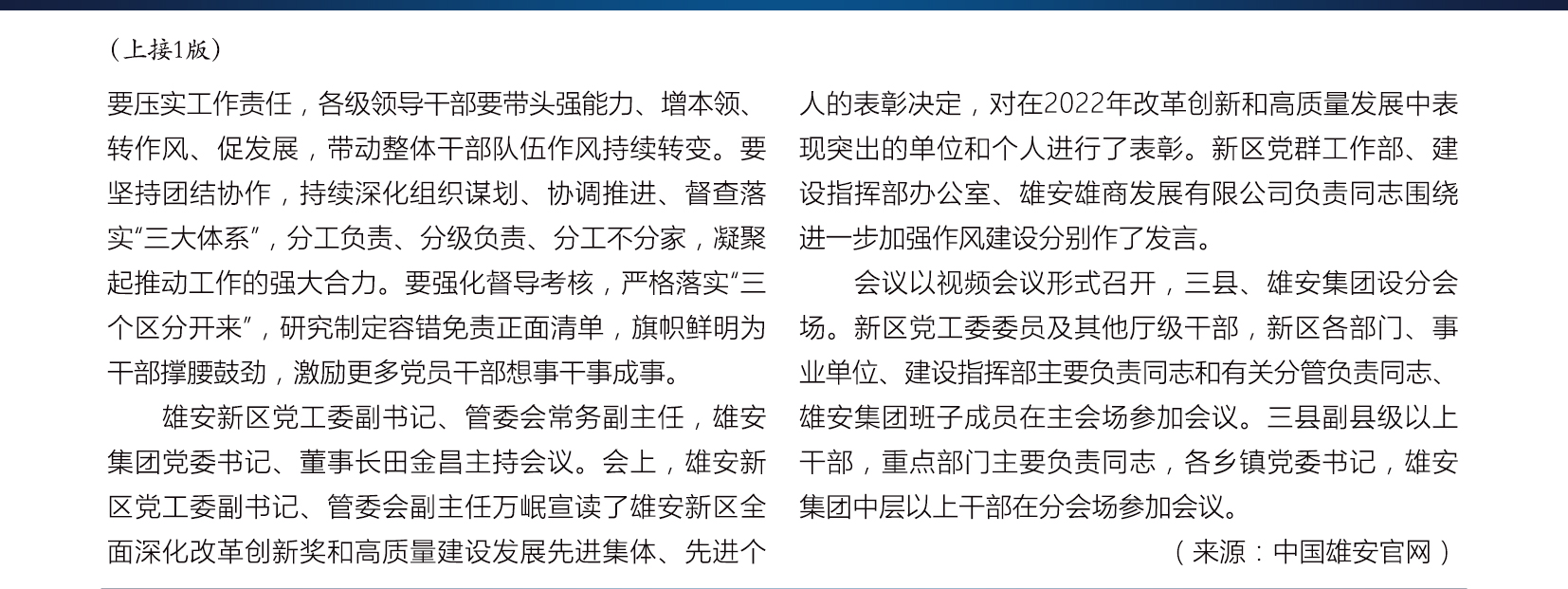 持续加强作风建设 用实干实绩书写雄安新答卷
