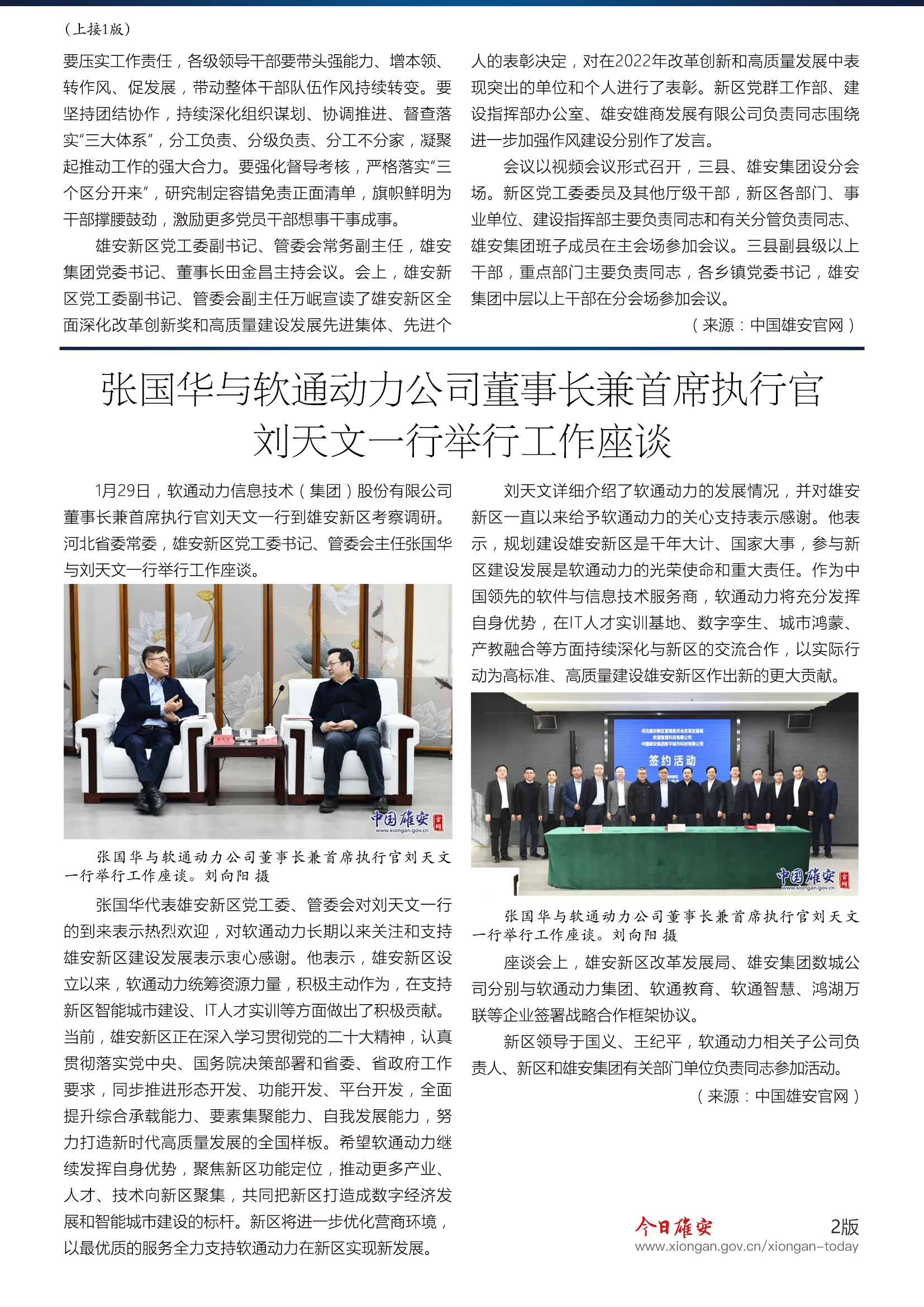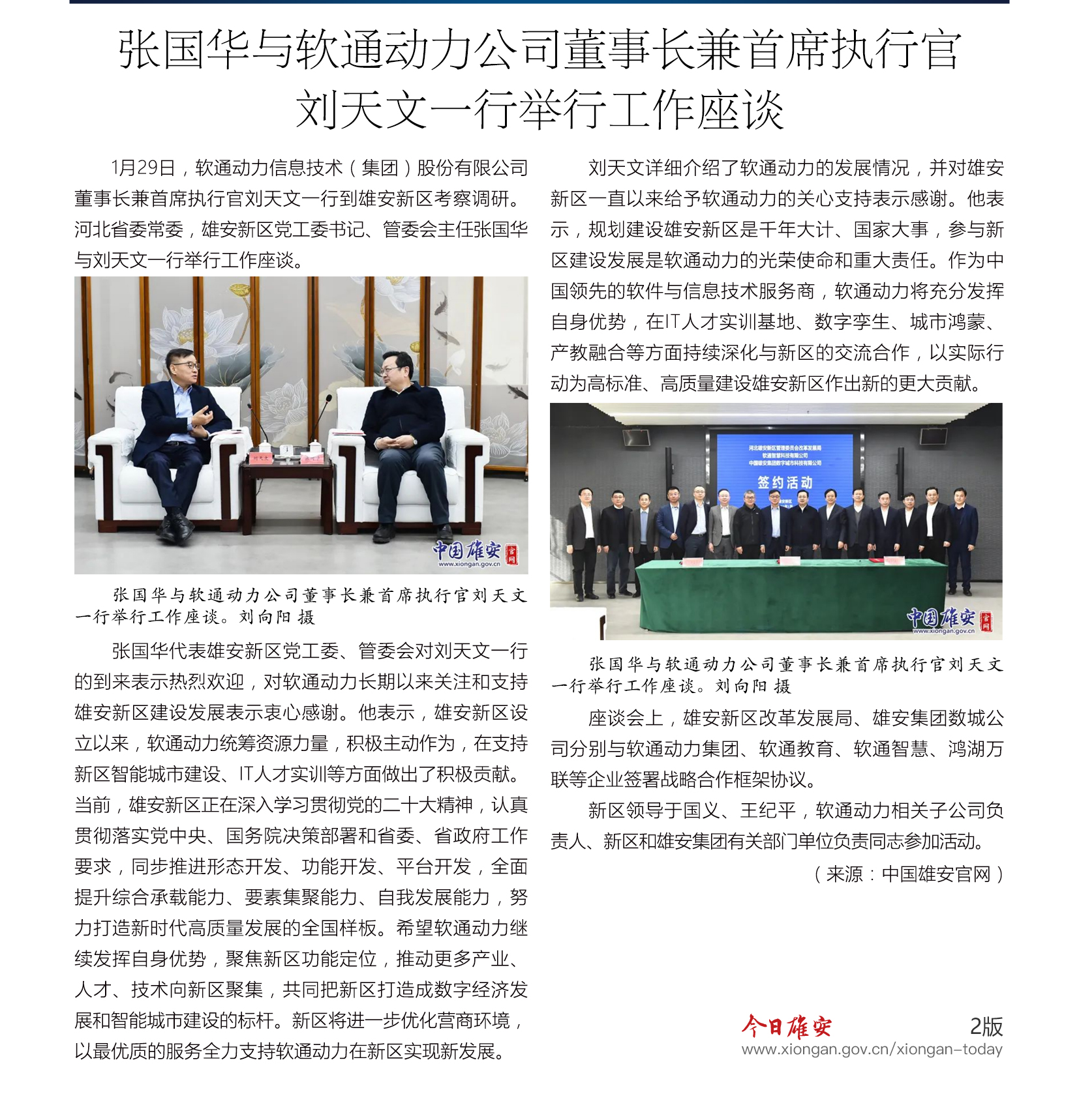 【雄安之声】张国华与软通动力公司董事长兼首席执行官刘天文一行举行工作座谈