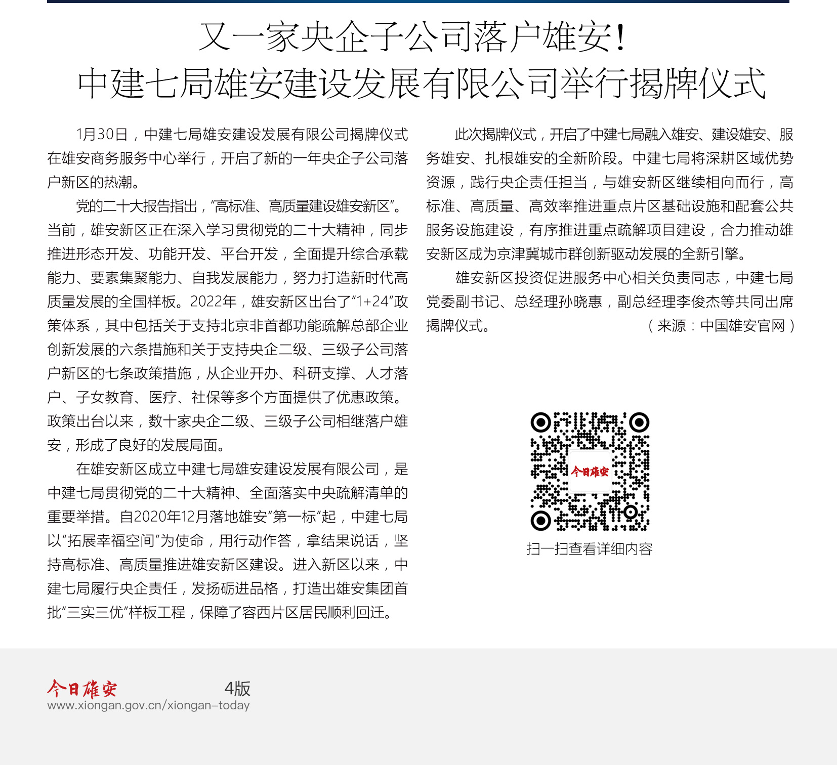 【雄安之声】中建七局雄安建设发展有限公司举行揭牌仪式