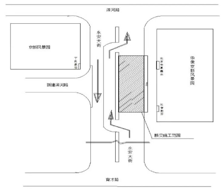 因施工需要,安新县永安大街(中医院以北至京新风景园三期以南)路段东半幅断交施工,计划断交日期为2023年02月07日至2023年02月20日。