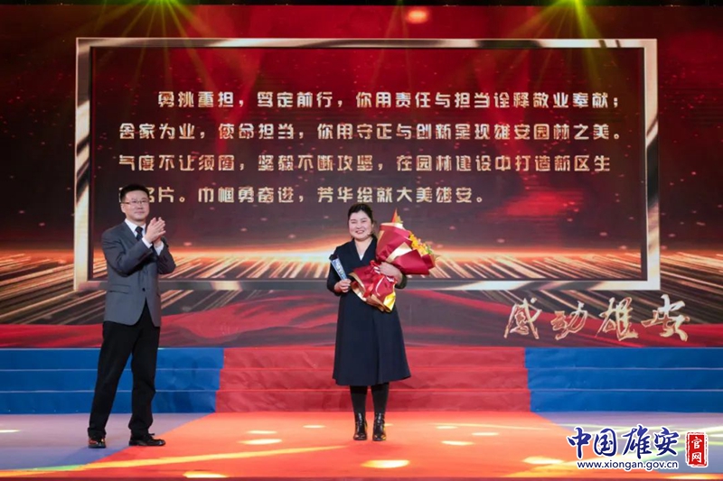 武芳芳上台领取“感动雄安2022”年度人物奖项。中国雄安官网毛鹤然 摄