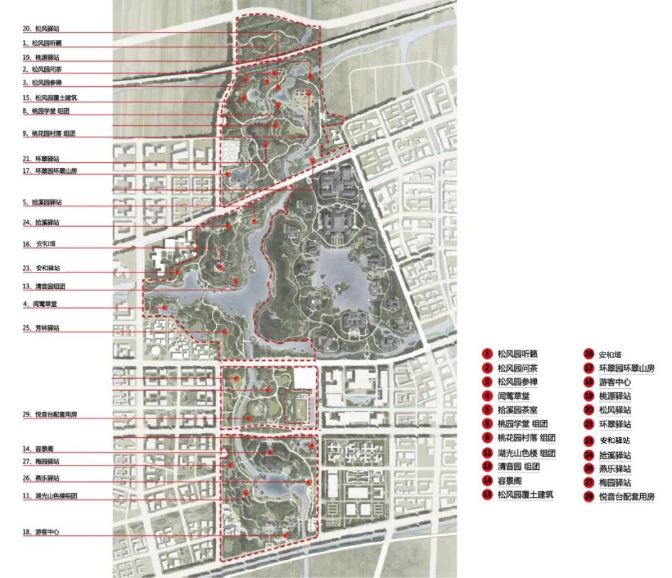 悦容公园位于雄安新区容东片区和辅助配套服务区之间,西至辅助配套区,北临容易线,东至容东片区,南接荣乌高速,是贯穿容城组团南北向城市空间的重要生态景观廊道。公园占地面积约160公顷,建设内容包括植物风景、园路系统、公园地形、水景水系、景观建筑、广场铺装、景观小品、城市家具等,重点打造松风园、桃花园、环翠园、安和园、拾溪园、清音园、芳林园、曲水园、燕乐园等9个园中园。