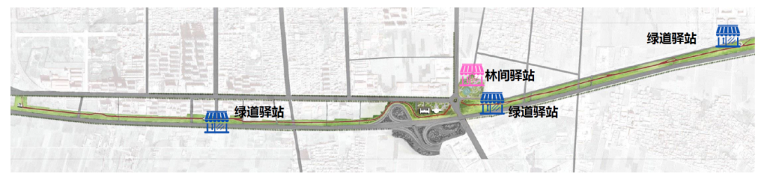 容东片区截洪渠景观一期配套公共空间主要为驿站,包括3个绿道驿站和1个林间驿站,绿道驿站每座可利用面积约56平方米,林间驿站可利用面积约95平方米。