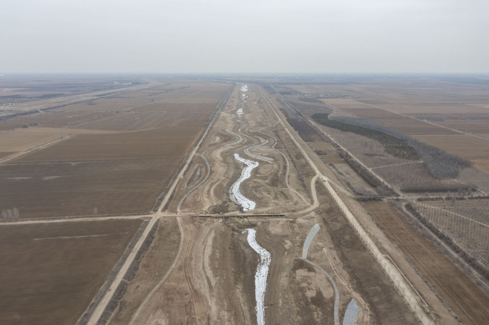这是雄安唐河河谷郊野公园项目现场(2月15日摄,无人机照片)。新华社记者才扬 摄