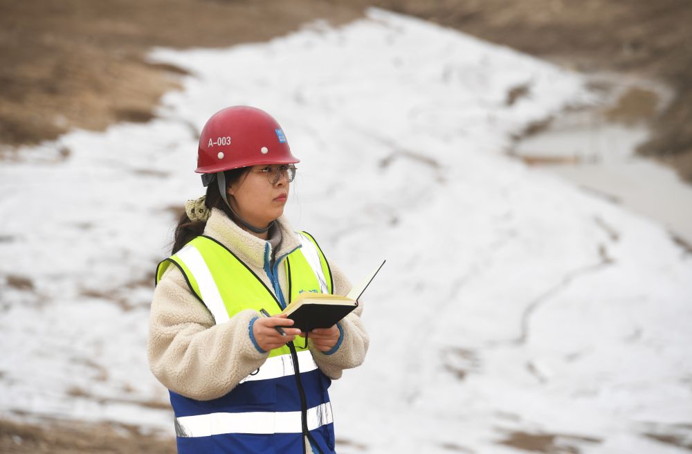 杨鑫博在雄安唐河河谷郊野公园项目现场工作(2月15日摄)。新华社记者朱旭东 摄