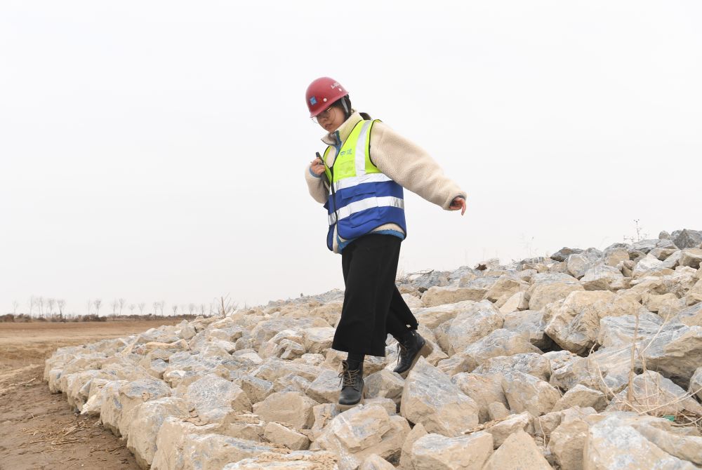 杨鑫博在雄安唐河河谷郊野公园项目现场(2月15日摄)。新华社记者朱旭东 摄