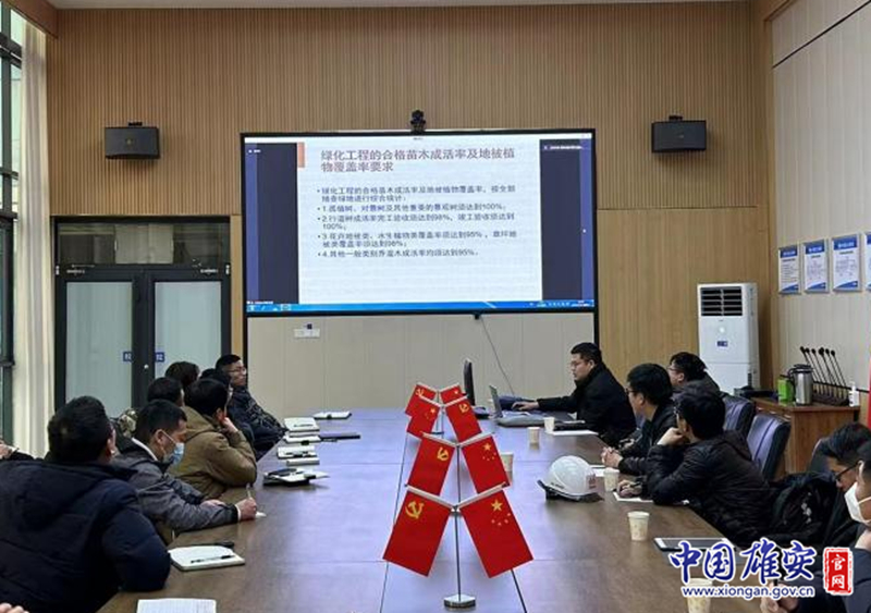 中国雄安官网2月17日电 为做好雄安新区园林绿化工程竣(完)工验收工作服务,进一步规范竣(完)工验收的组织形式及程序,加强雄安新区园林绿化工程项目质量管理,践行“雄安质量”,2月14日,雄安新区建设工程质量安全检测服务中心深入项目一线,采取线上线下相结合的方式组织召开《雄安新区园林绿化工程竣(完)工实施细则》(以下简称《细则》)宣贯会。雄安集团生态建设投资有限公司及各项目设计单位、监理单位、施工单位主要负责人共计100余人参会。