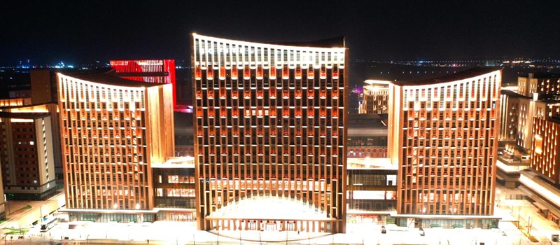 初春傍晚,处处彰显着国际范儿的雄安索菲特酒店点亮城市夜空。河北新闻网记者刘光昱 摄