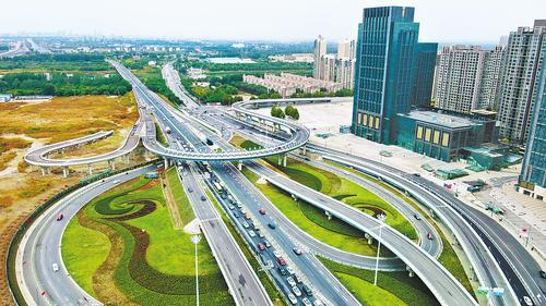 车流穿梭在通燕高速燕郊西出口立交枢纽上。经此枢纽,三河通往北京市通州区仅需10分钟,加快了周边地区与北京城市副中心交通的顺畅对接。