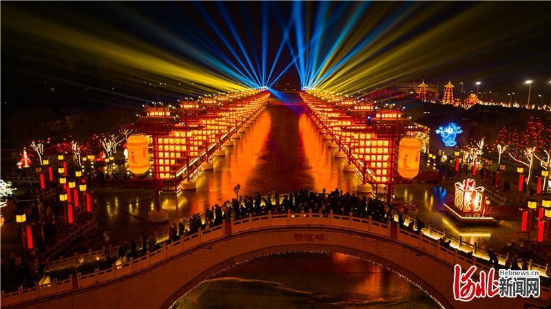 近日,在位于丰南区唐津运河生态旅游度假景区的河头老街,璀璨灯光和精彩活动吸引了众多游客前来观赏。河北日报通讯员王子一摄