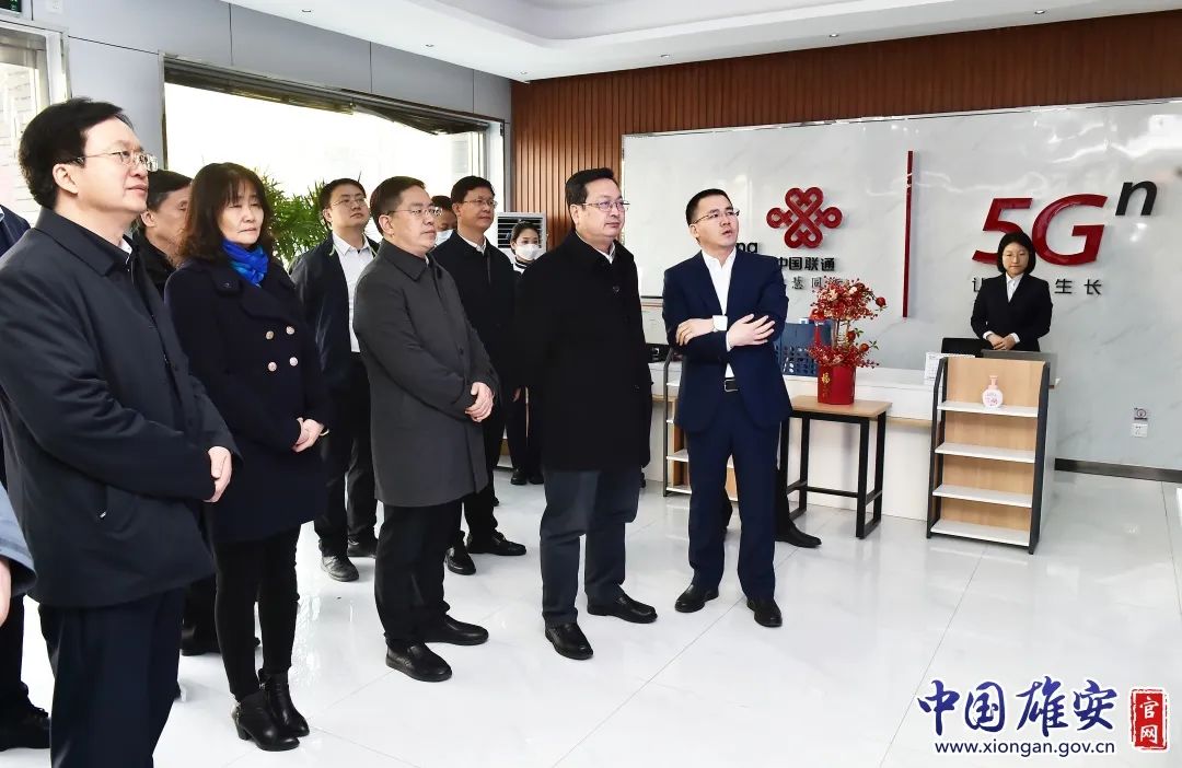 张国华一行先后来到中国移动雄安产业研究院、联通雄安产业互联网有限公司,听取软件产品开发和创新研发能力建设情况汇报,了解企业生产经营发展情况。他指出,雄安新区设立以来,始终坚持数字城市和现实城市同步规划、同步建设,适度超前布局智能基础设施,积极搭建开放创新平台,加快发展新一代信息技术产业,取得初步成果。希望中国移动和中国联通积极发挥自身优势,进一步拓展参与新区建设发展的广度和深度,以高质量信息通信服务支撑好新区经济社会高质量发展。