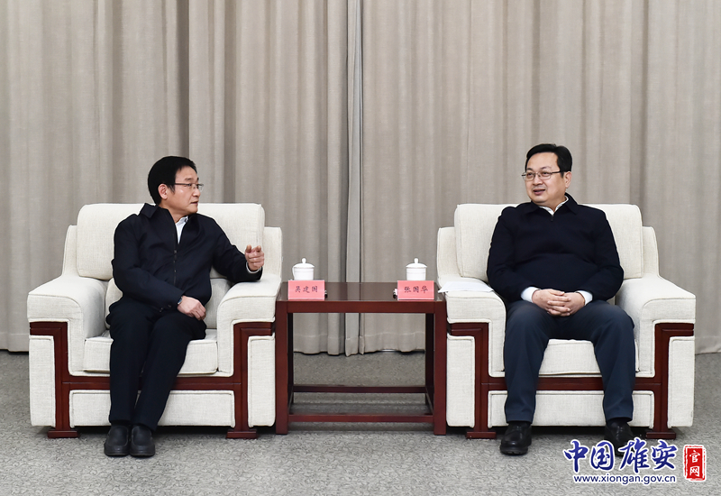张国华首先代表雄安新区党工委、管委会对吴建国一行的到访表示热烈欢迎,对中科院科创中心长期以来给予新区的关心支持表示衷心感谢。他表示,自新区设立以来,中科院科创中心作为中科院综合统筹协调机构,积极落实京津冀协同创新发展战略部署,协调优势资源汇聚雄安,为新区科技创新和产业发展作出了积极贡献。目前,雄安新区正围绕“5+6”产业发展方向,积极布局高端高新产业,稳步推进中科院雄安创新研究院、科创中心、中试基地、国创中心等高质量平台载体落地建设,制定出台一系列创新人才政策,为各类创新资源要素集聚和产业发展创造了良好条件。希望中科院科创中心发挥自身优势,积极参与新区科技创新工作,为新区发展营造优良的科技创新生态环境,携手推动重大国家战略落地落实、开花结果。