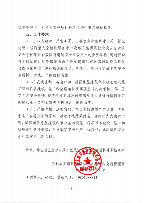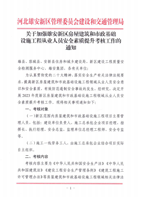 关于加强雄安新区房屋建筑和市政基础设施工程领域从业人员安全素质提升工作的通知
