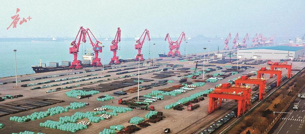 首钢京唐公司成品码头正在组织发运。记者张北男、闫军 摄