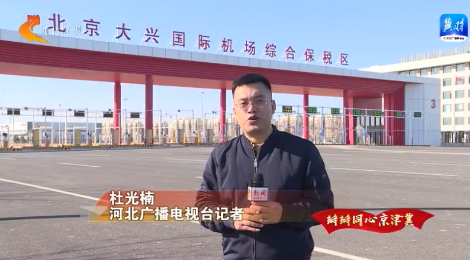 我现在是在北京大兴国际机场综合保税区,它是由京冀两地共建、全国唯一的跨省市综合保税区,成为全国首创的综保区跨界共商、共建、共享新模式标杆。