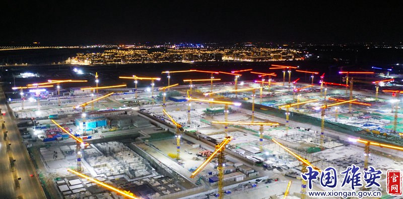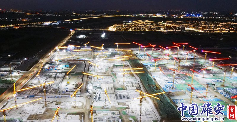 雄东片区B单元安置房项目建设夜景。中国雄安集团供图