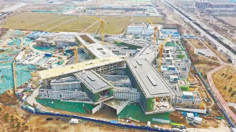 2月22日,春风送暖之际,记者来到位于东三环与东风东路交叉口东南角的中国古动物馆施工现场。700多名工人正在紧张有序地忙碌着,有的在砌墙贴砖,有的在高空作业,建设者们干劲十足。在机器的轰鸣声中,中国古动物馆加速呈现。
