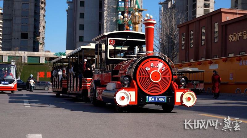游客乘坐观光车游览塔元庄村。长城网·冀云客户端记者张超 摄