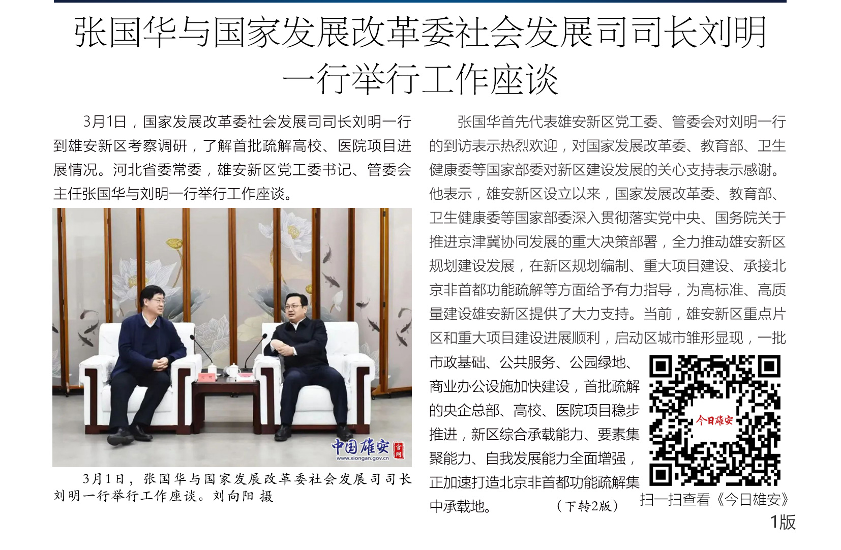 张国华与国家发展改革委社会发展司司长刘明一行举行工作座谈