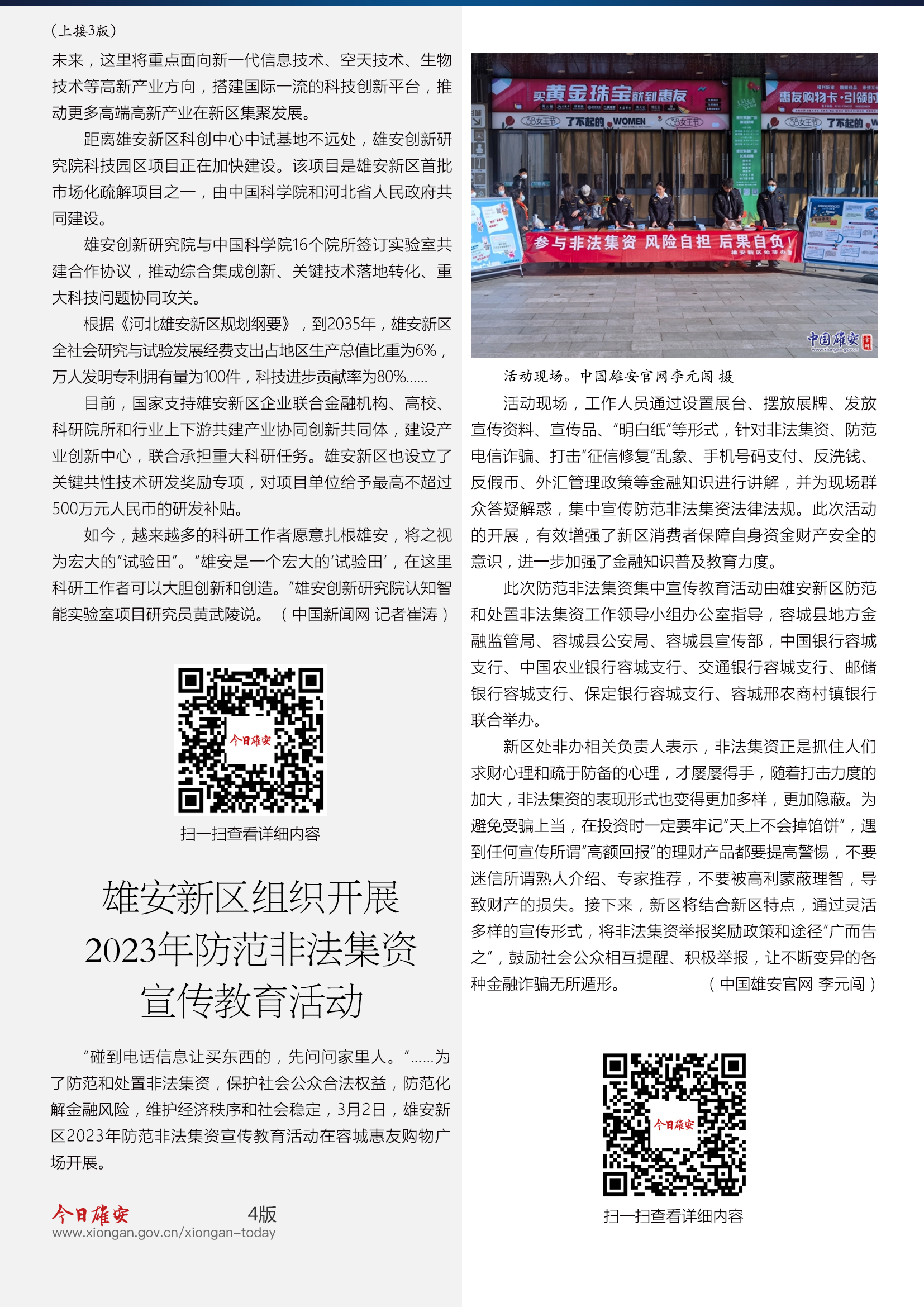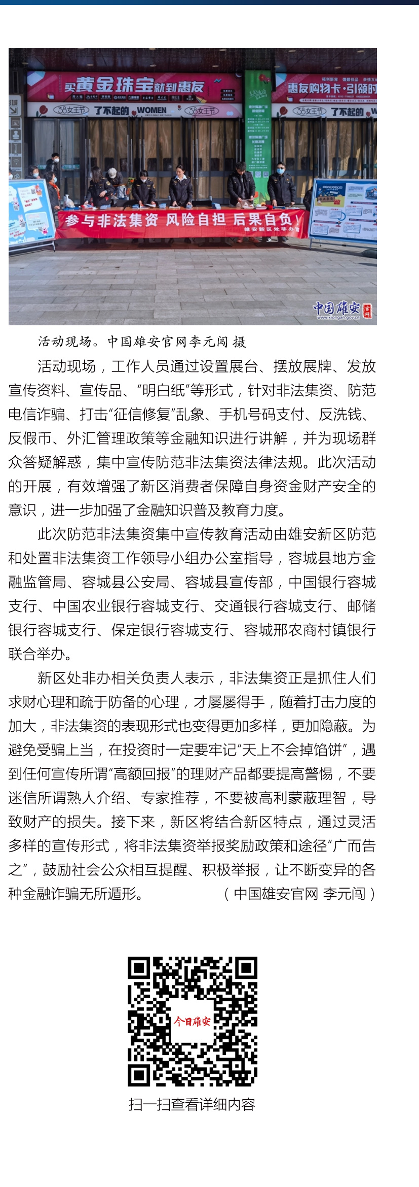 雄安新区组织开展2023年防范非法集资宣传教育活动